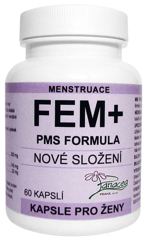 FEM+ (PMS formula) obsahuje komplex standardizovaných extraktů bylin, které pomáhají kontrolovat hormonální rovnováhu ženy před menstruací a odstraňují nepříjemné příznaky PMS (premenstruační syndrom).